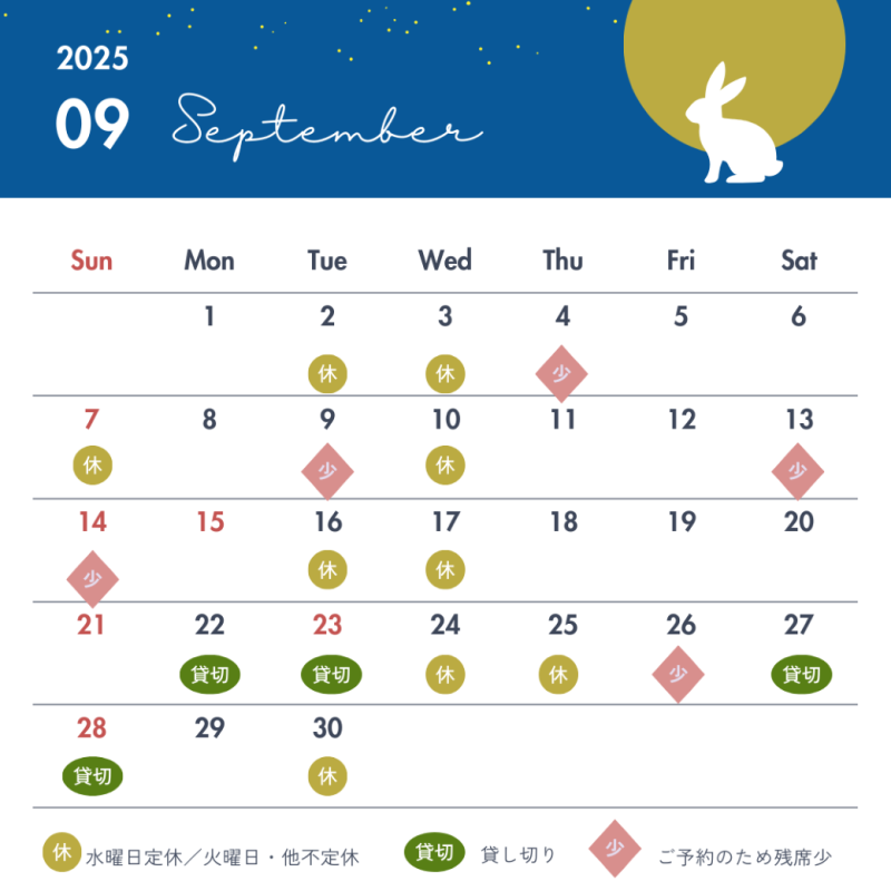 2025.09.01 9月の営業ご案内🍇 こんにちは😊 マンマミーアです✨ 9月の営業日のお知らせです🍇 定休日以外にも貸切や一部貸切の日がございます。ご了承ください。 宴会、歓送迎会、パーティー、結婚式などのご予約も承ります。お電話にてお問い合わせください。 お客さまのご来店心よりお待ちしております✨ お知らせ 前の記事へ 一覧へ戻る 次の記事へ